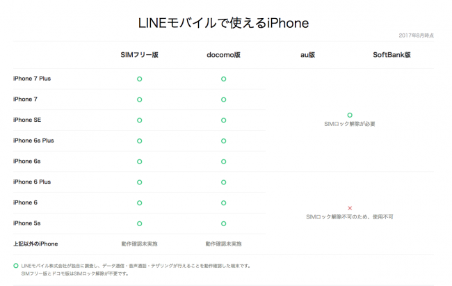 LINEモバイルプラン別対応一覧
