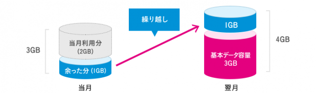 また、チャージして当月のデータ容量が余ったとしても翌月に繰越ができるので無駄がありません。