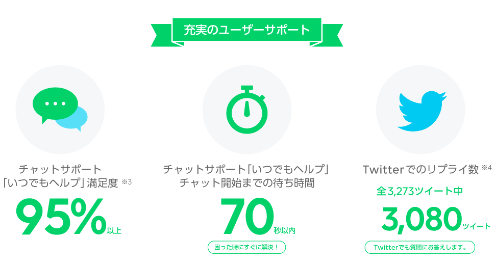 - トラブル時もLINEからチャットサポートがいつでも受けられ安心