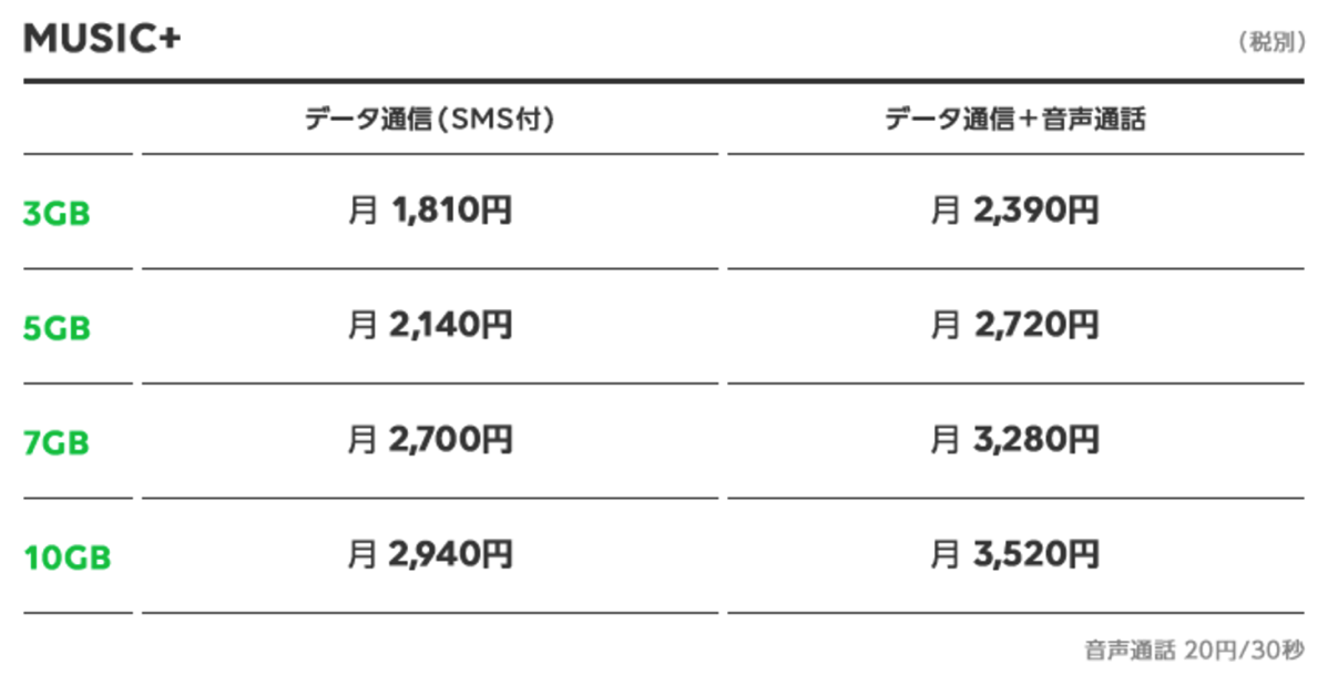 - MUSIC+プラン: LINEとSNSとLINE MUSICの通信は全てカウントフリー