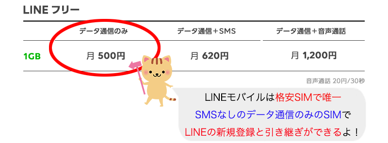 LINEモバイルが人気な理由の1つに月額660円だけで利用できるデータ通信専用「LINEフリープラン」がありますがこちらのプランでもSMS認証が不要で、LINEの新規登録や機種変更ができるからです。そのためSMSをLINEの認証のためにつけなくてもいいので