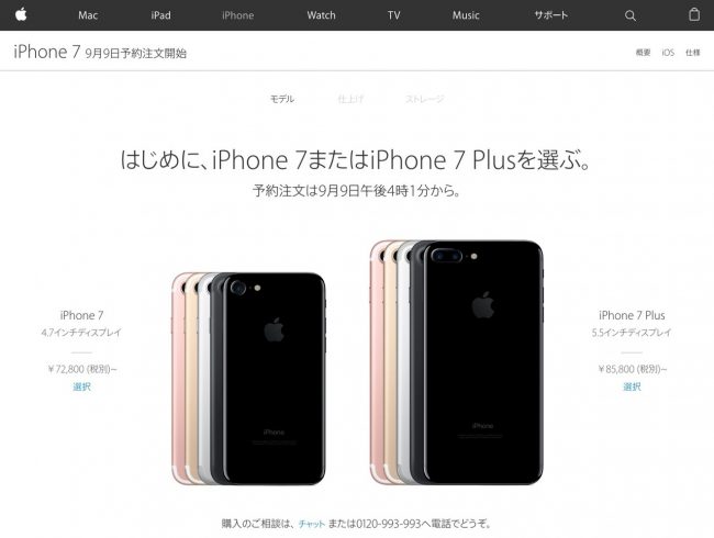 - iPhone7 SIMフリー版 32GB 72,800円(一括価格)※分割も可能