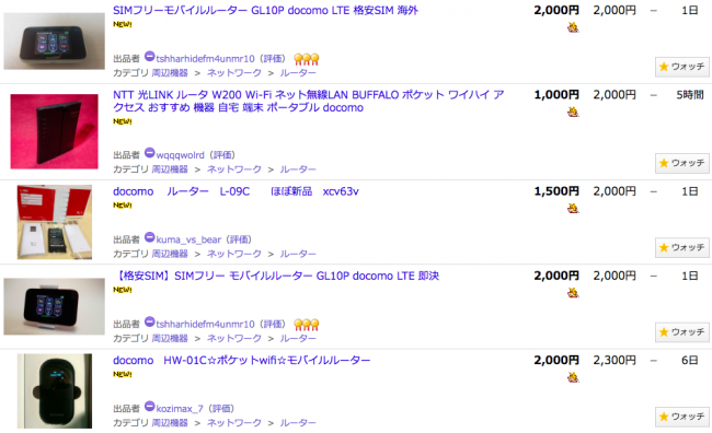 Yahoo!オークションなどでみてみると即決で2000円もだせば購入できるくらい価格が落ちてきていますので送料合わせても2500円で状態のよいモバイルルーター本体が手に入ります。