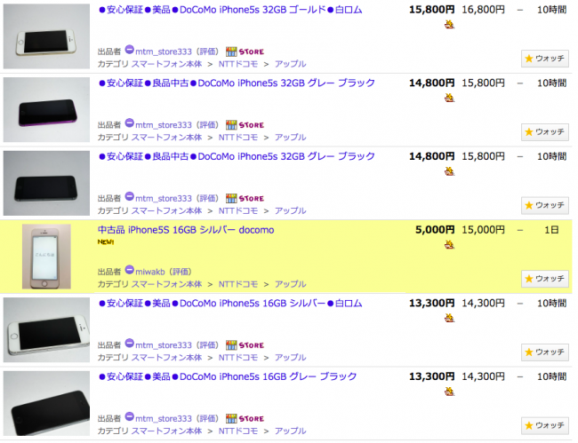 - iPhone5cの売却価格とiPhone5sの購入金額が同じ